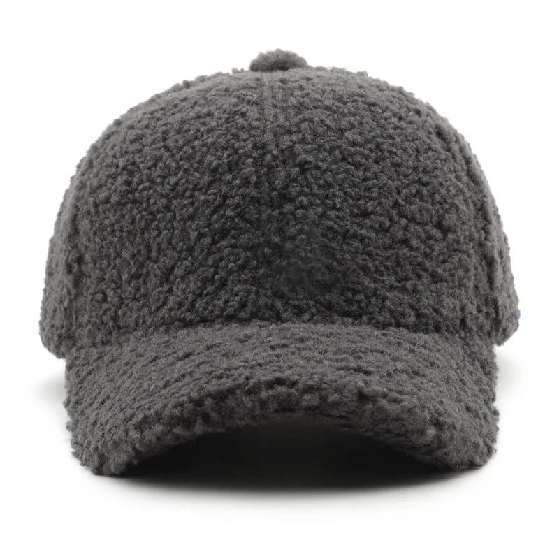 Women's Autumn Winter Baseball Cap 100% Polyester Solid Lamb Wool Hats Keep Warm Plush Cap for Spring