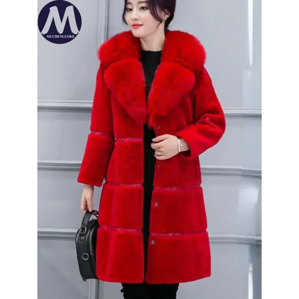 Women's Autumn Winter Fur Coat Imitation Fox Hair Collar Warm Korean Fashion Slim Fit Artificial Plush