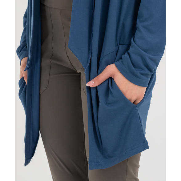Open front closure,cut and sew panel and pocket on front,long sleeveProduct Features