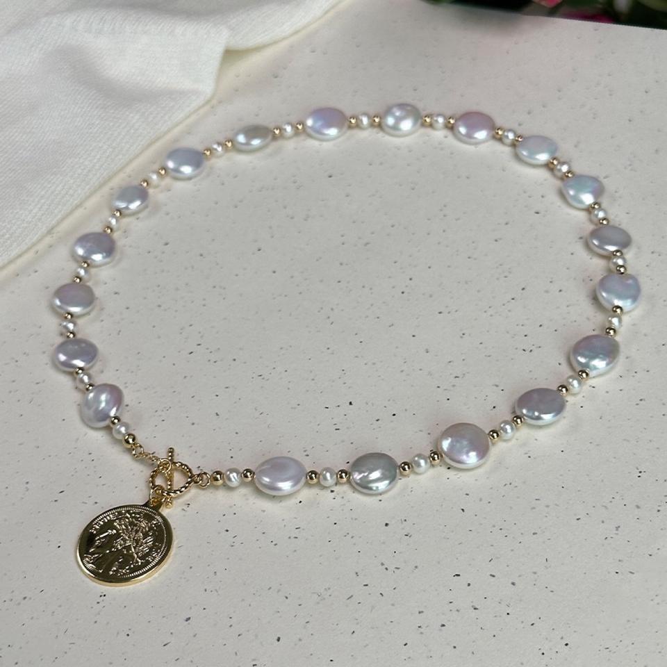 Women's Baroque Button Freshwater Pearl Necklace Strong Natural Light 14K Gold Copper Pendant Fashion Pendant Necklaces