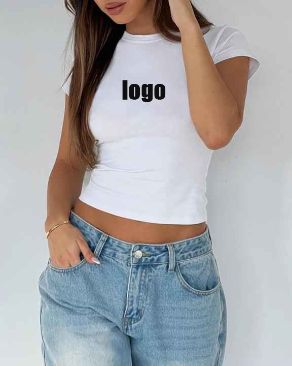 Women's Basic Summer Short Sleeve Crewneck T-Shirts Cute Going Out Tops Custom Graphic Baby Tee Blanks Y2K