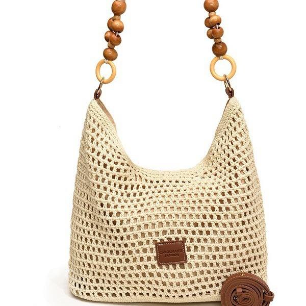 Women's Beach Woven Bag Large Capacity Single Shoulder Underarm Handbag Beach Vacation Crochet Bag Handmade