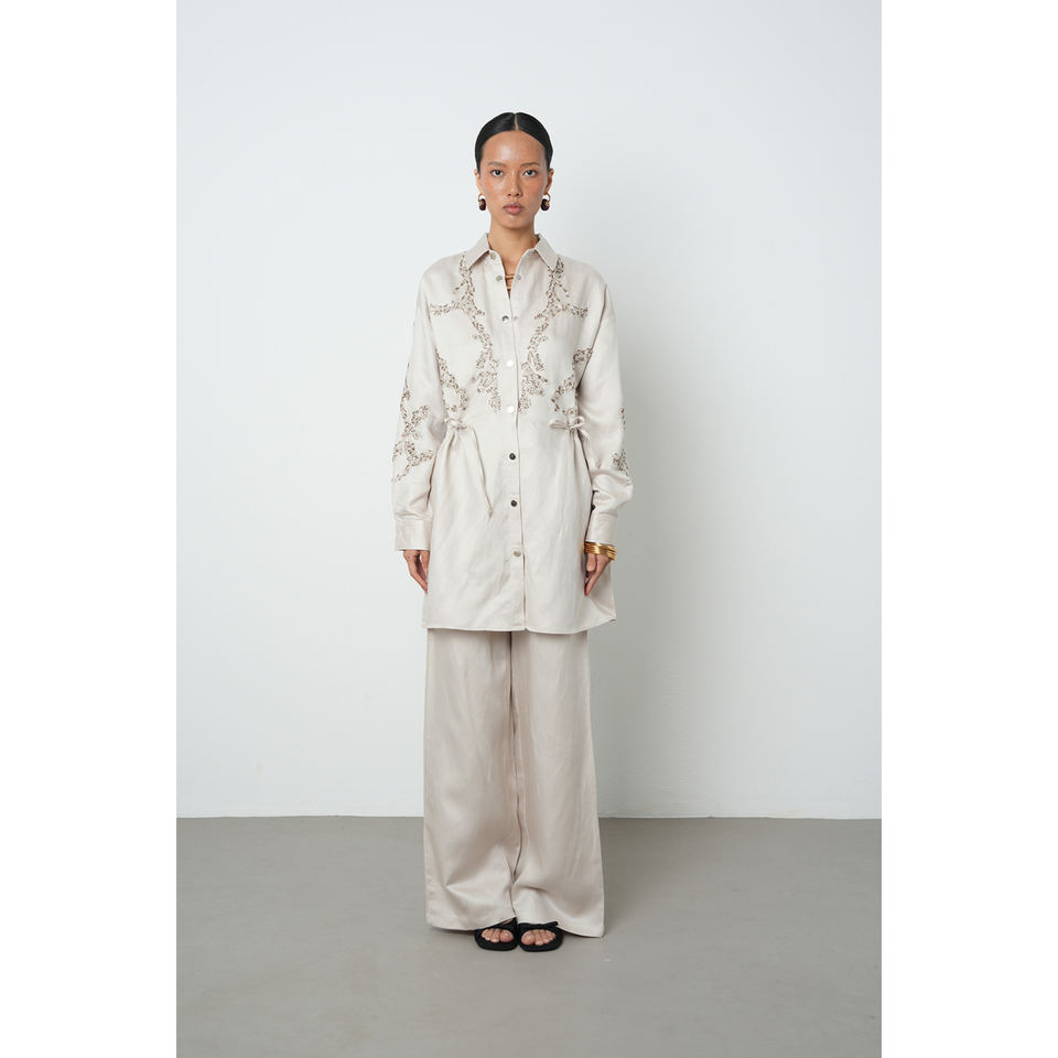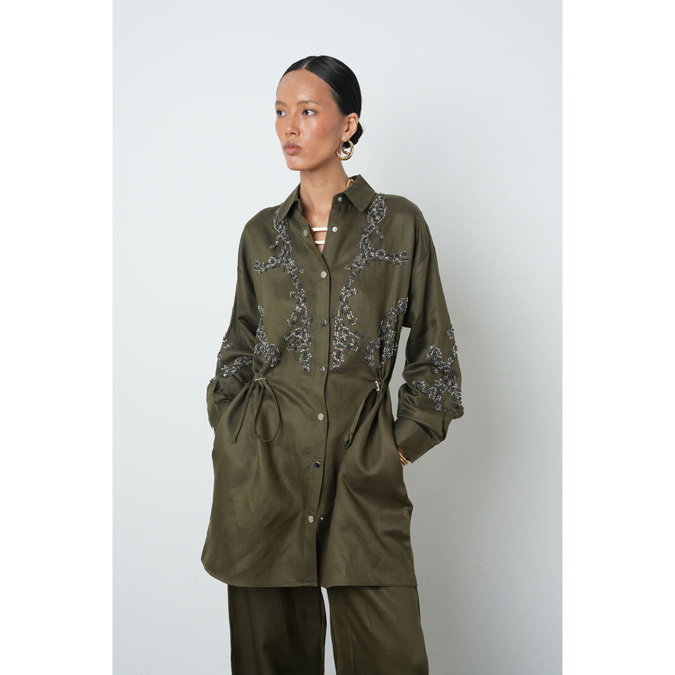 Women's Beaded Jacket with Gathered Waist and Snap Closure Elegant Outerwear