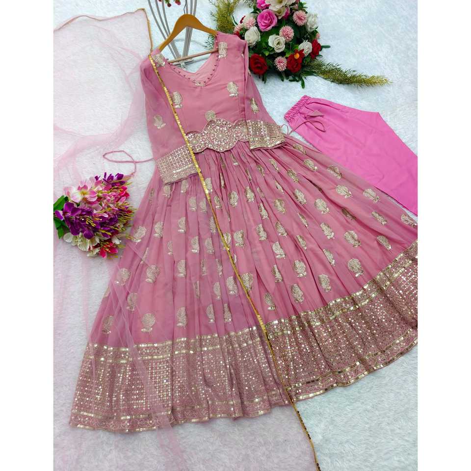 Women's Beautiful Gown with Attached Belt Pent and Dupatta for Parties