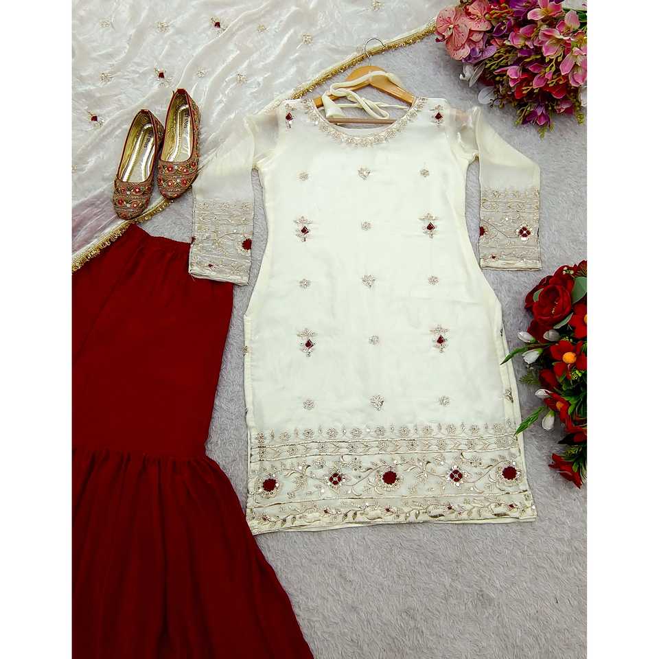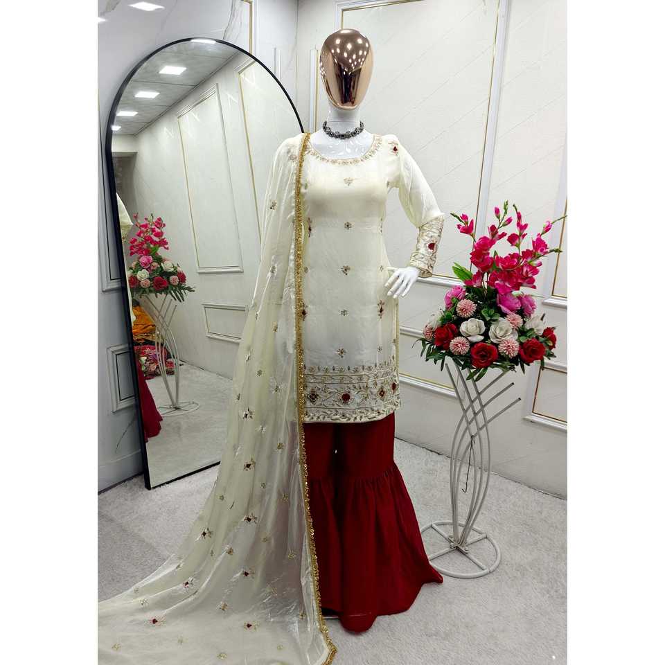 Women's Beautiful Party Wear Top-Sharara and Fancy Dupatta Set