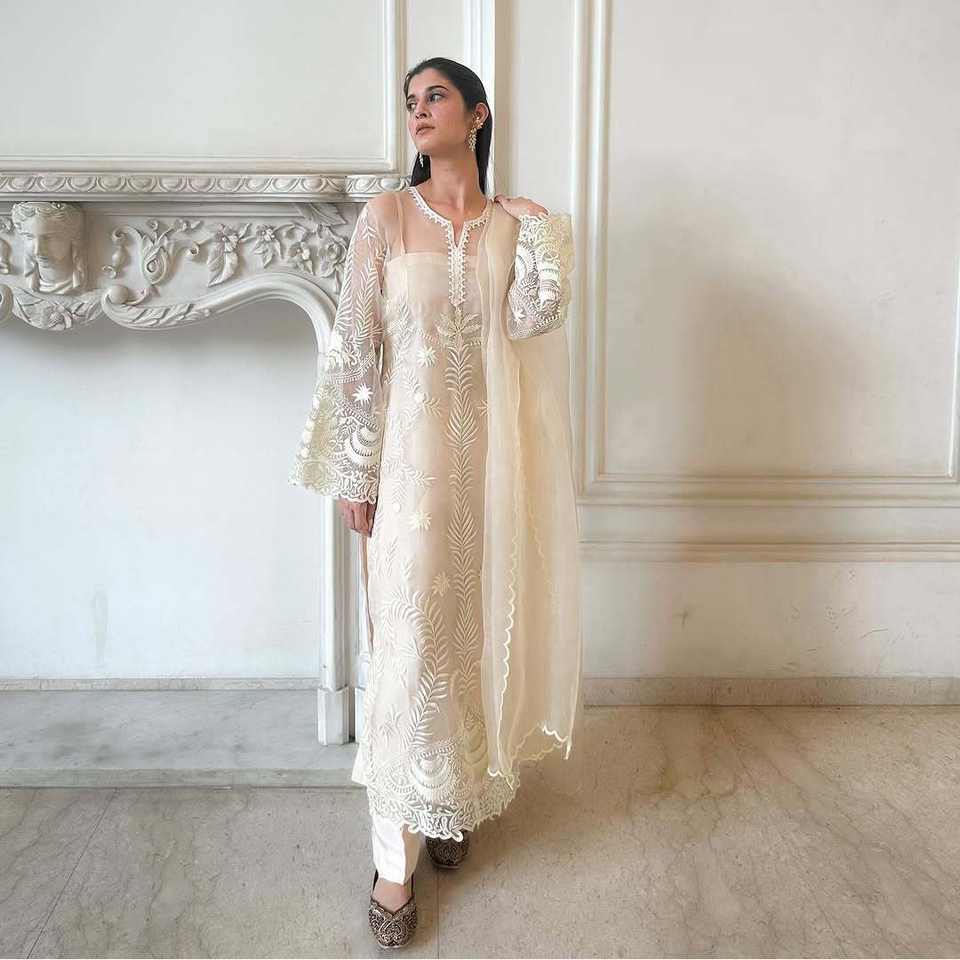 Women's Beautiful Party Wear Top Pants Dupatta Set with Embroidery Work