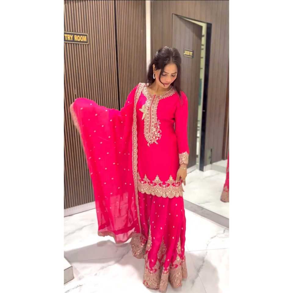 Women's Beautiful Top- Sharara and Dupatta Set with Heavy Embroidery Sequence Work