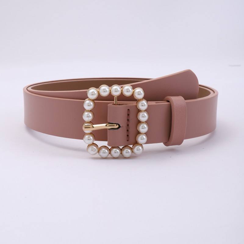 Women's Fashion Simple Pearl Pin Buckle Dress Coat Belt Made of Alloy PU and Plastic Chic and Stylish Accessory