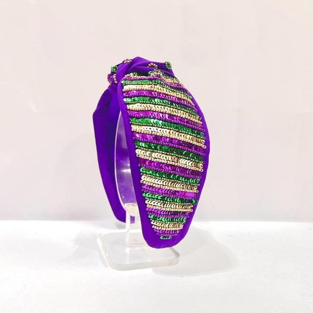 Women's Best Designer Hand Beaded Mardi Gras Headband Show Your Spirit Made in India At Wholesale Bulk Custom Beaded Headbands