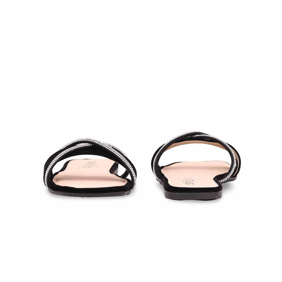 Women's Black Casual Fur Slipper CL1862 Fashion Slip-Ons