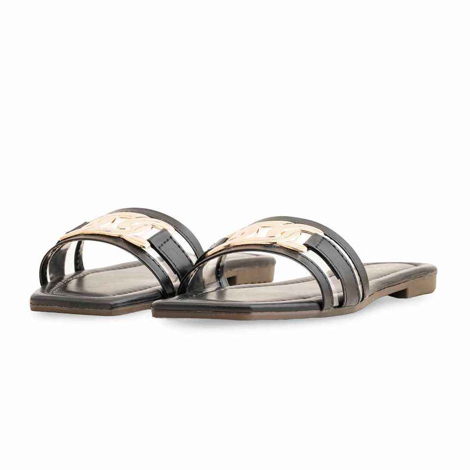 Women's Black Casual Slipper with Animal Prints CL1967