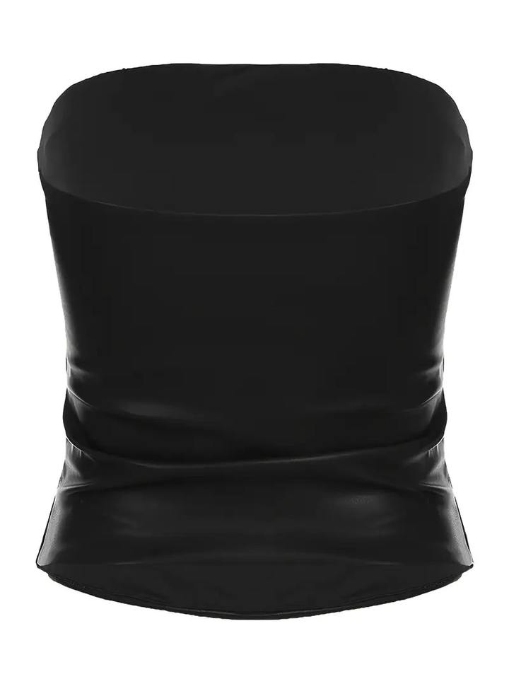 Women's Black Leather Corset Top Waist Cinchers Rucked Design Hook-and-Eye Closure 3D Embroidery Spring/Summer Streetwear