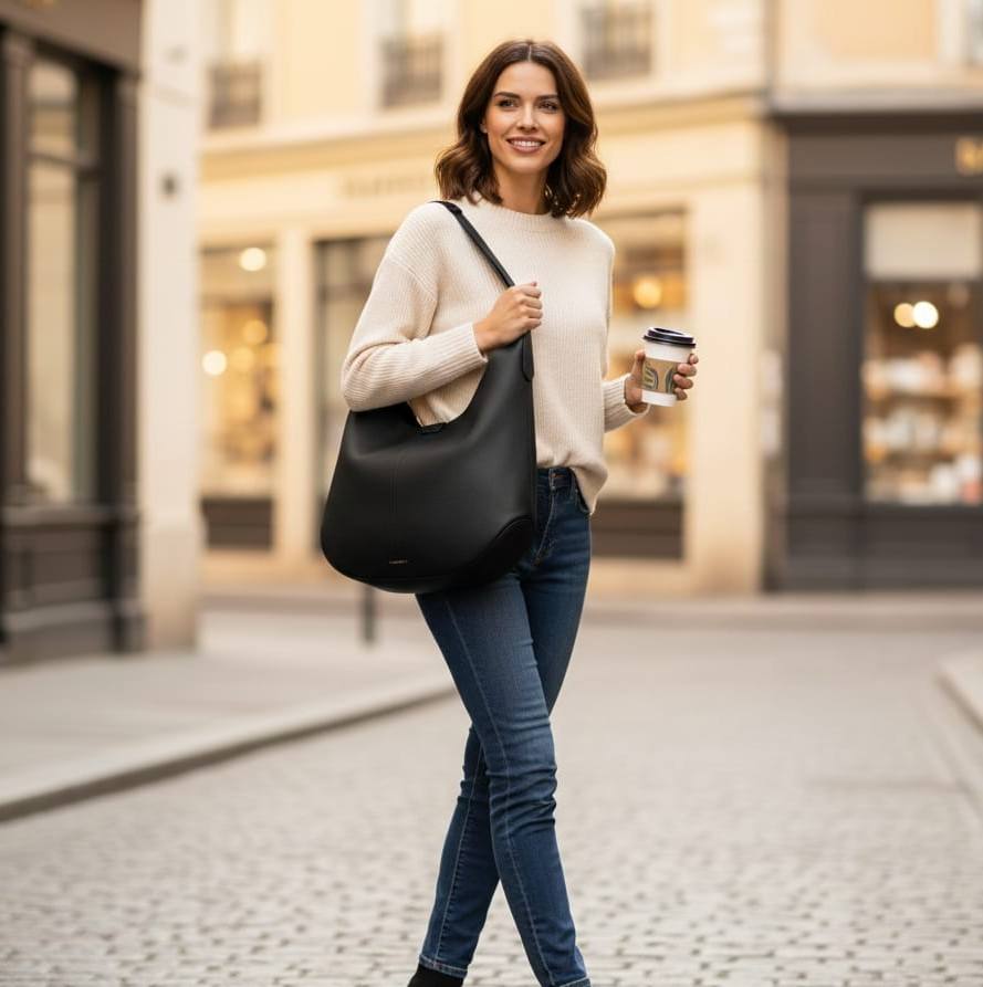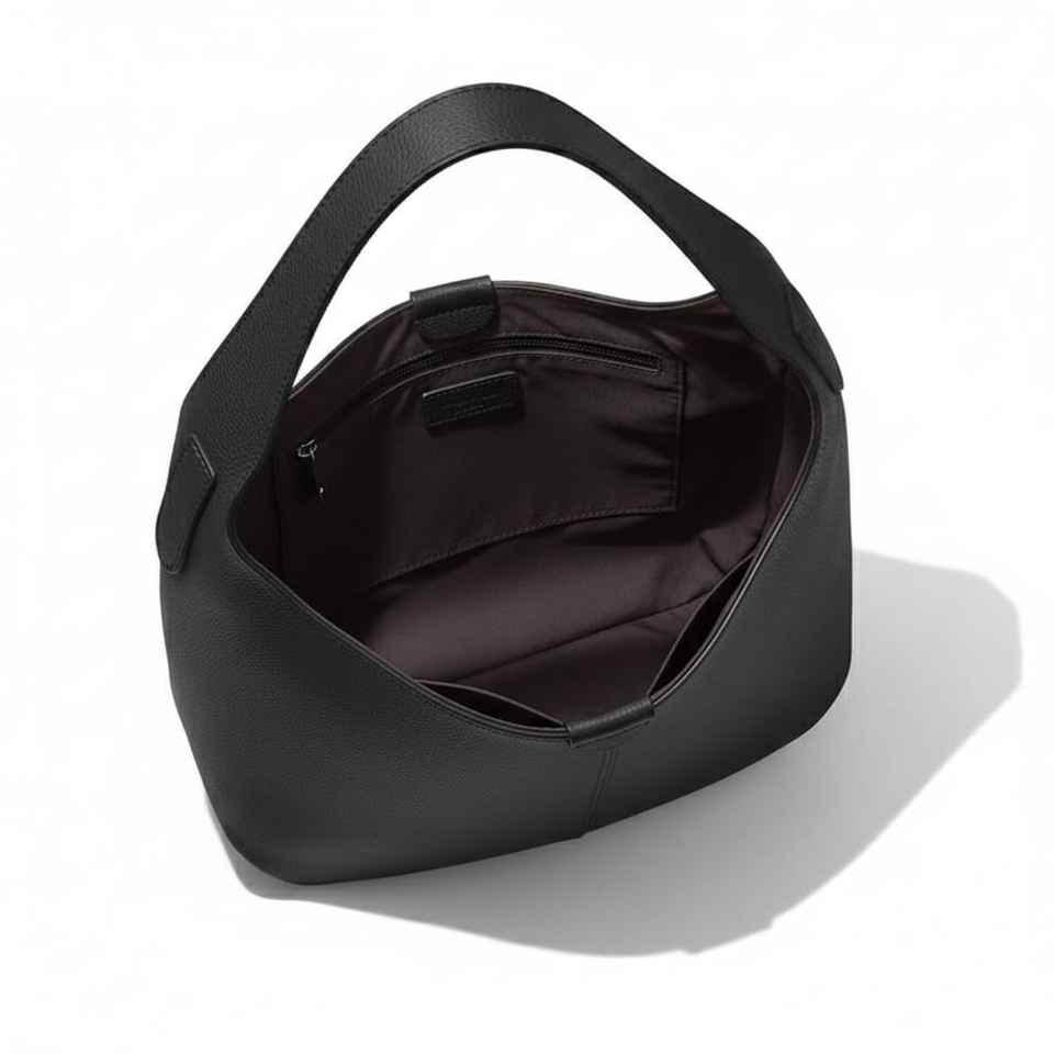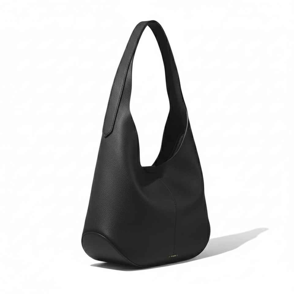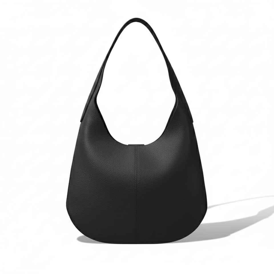 Women's Black Genuine Leather Fashion Candy Zip Single Strap Hobo Bag Large Slouchy Shoulder Tote Purse Minimalist Soft for Work