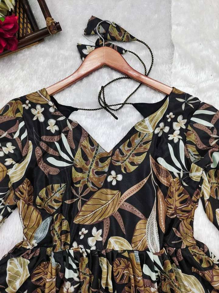 Women's Black Georgette Floral Printed Maxi Dress Designer Wedding Party Wear Made From Silk Material Long Length Suit for Girls