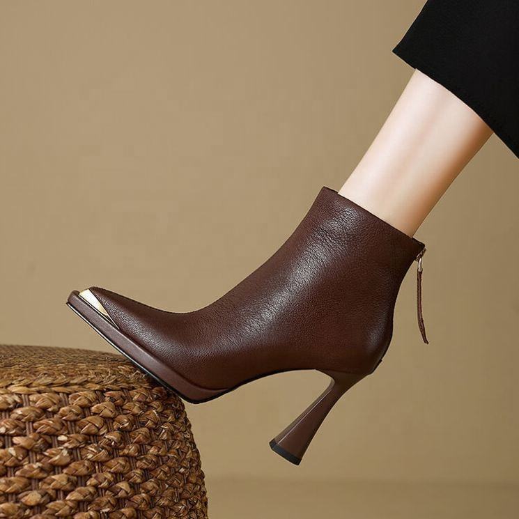 Style:Korean, Retro, Fashion, Work, Thick heel, Roman Boot, zipper-up, High top, Sporty