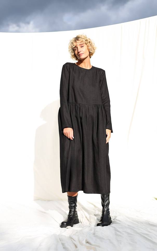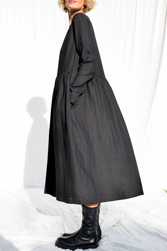 Womens Black Linen Blend Maxi Dress Sleeveless Loose Fit Elegant Solid Eco-Friendly Breathable A-Line with Keyhole Back