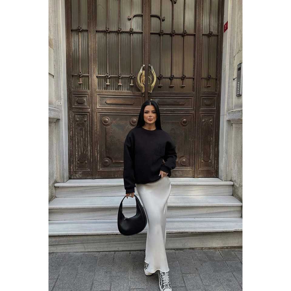 Women's Black Organic Sweatshirt with Embroidered Logo Hooded Streetwear Design with Zipper and Letter Pattern for Winter