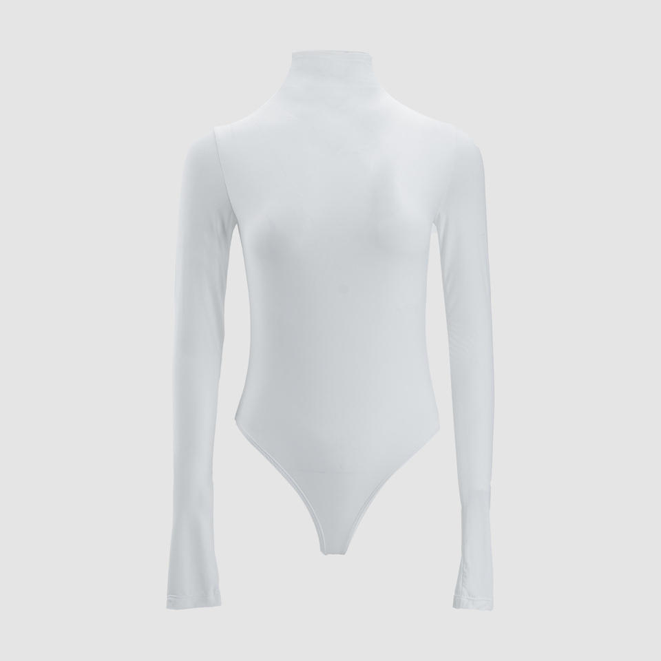 Women's Black Stretch Skinny Turtleneck Minimalist Bodysuit Seamless Long-Sleeve Spring Tee