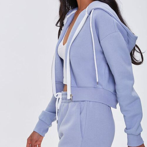 Women's Blue Cotton Crop Top Jackets Short Length Full Sleeves Autumn Winter Knitted Wear Customized Wholesale Price