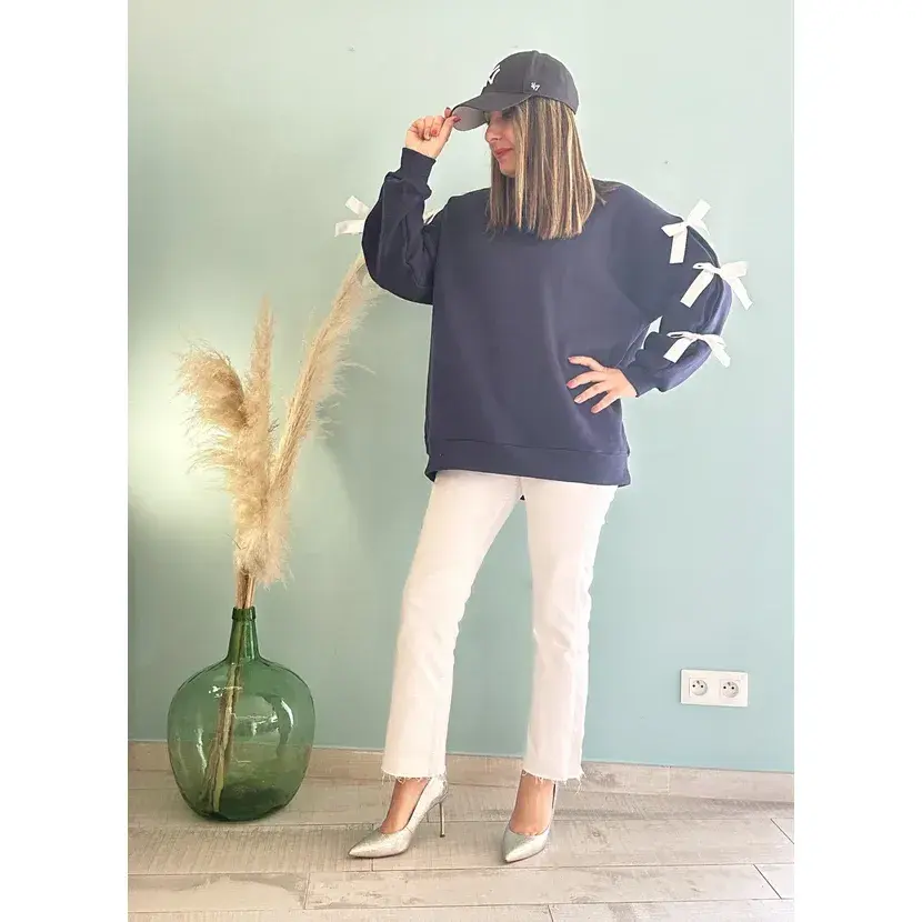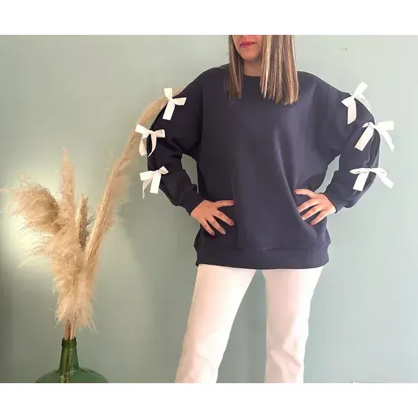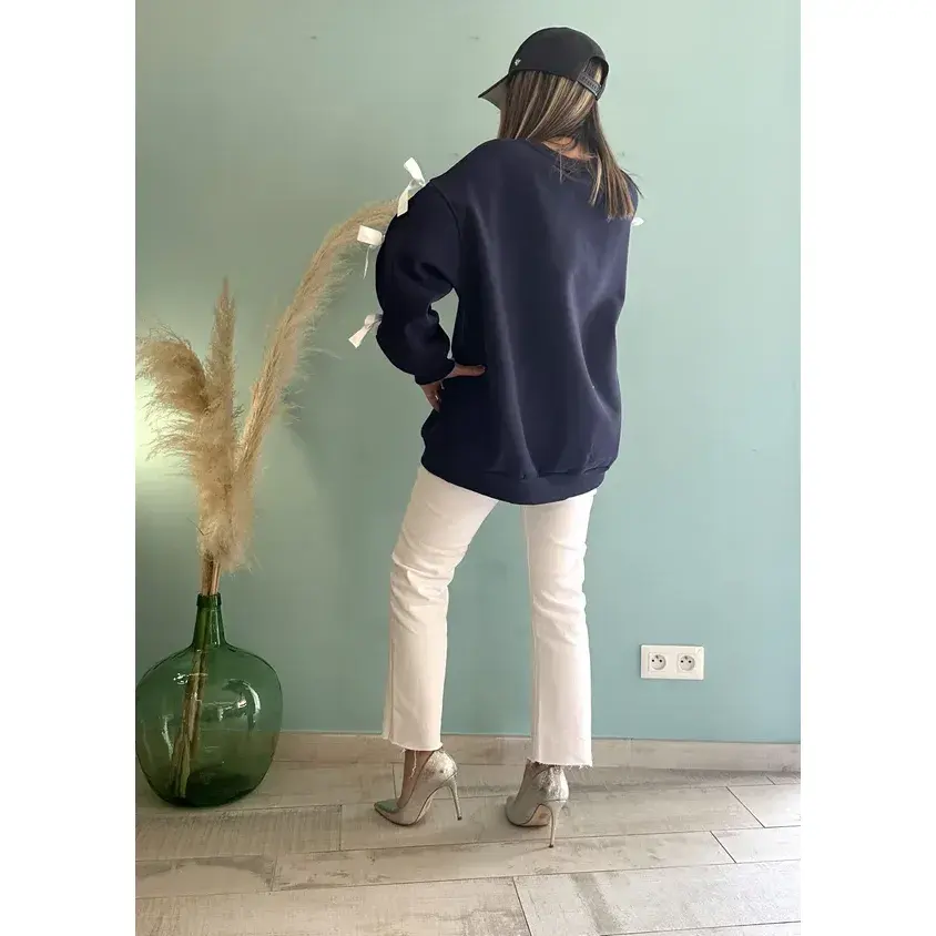 Women's Blue Flore Sweater High Quality Knitwear Breathable Casual with Front Logo Print Pattern for Autumn Winter Seasons