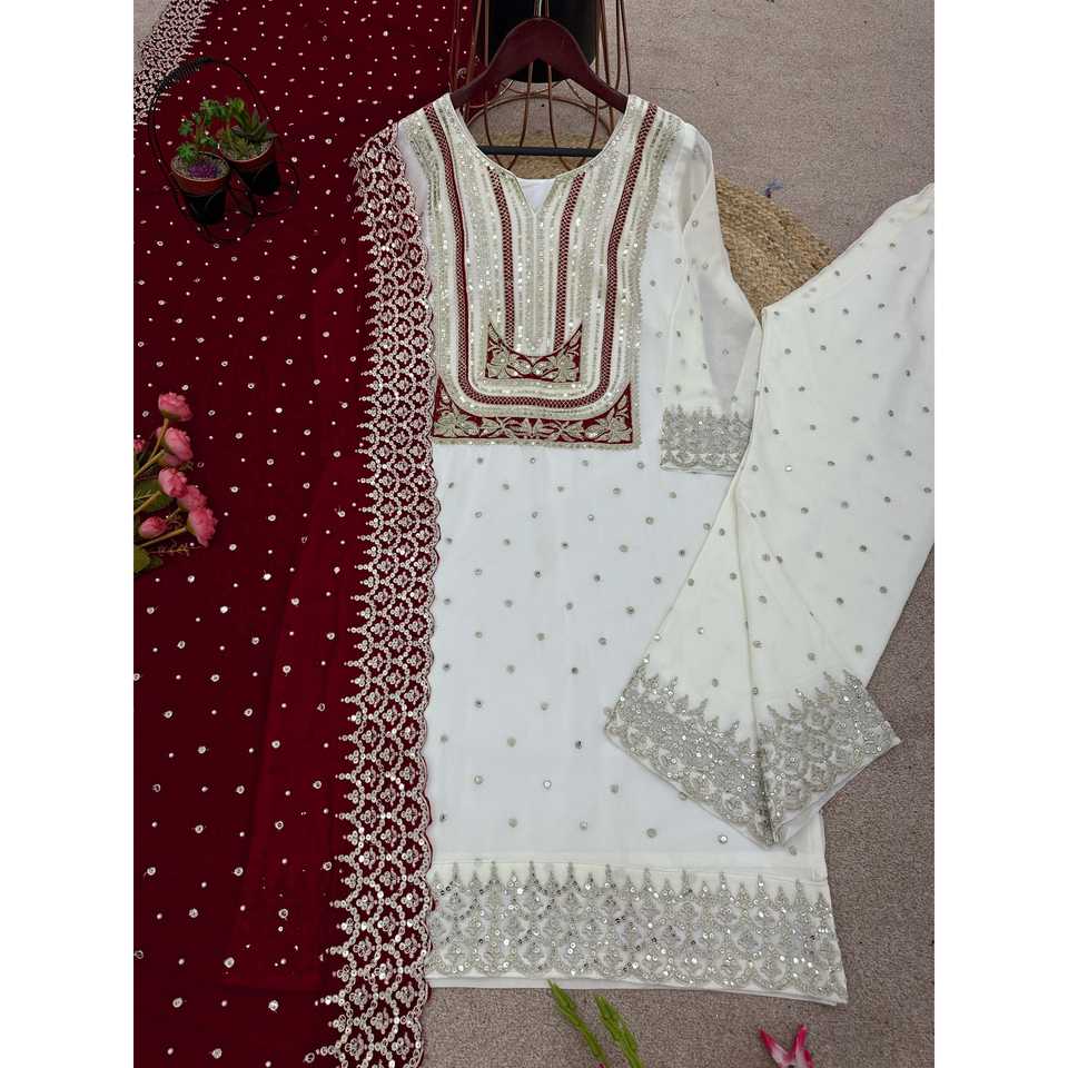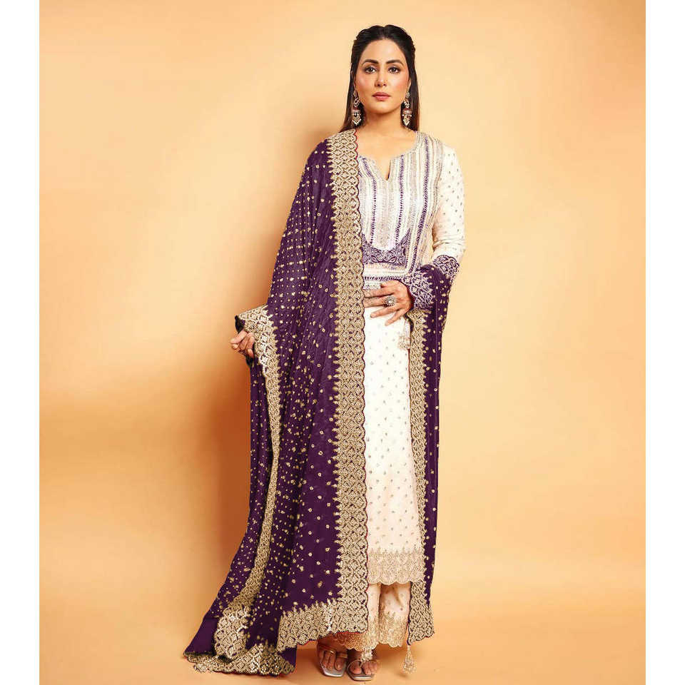 Women's Blue Top-Down Dupatta Set with Heavy Embroidery Sequence Work Size L NSR Brand Elegant Fancy Design