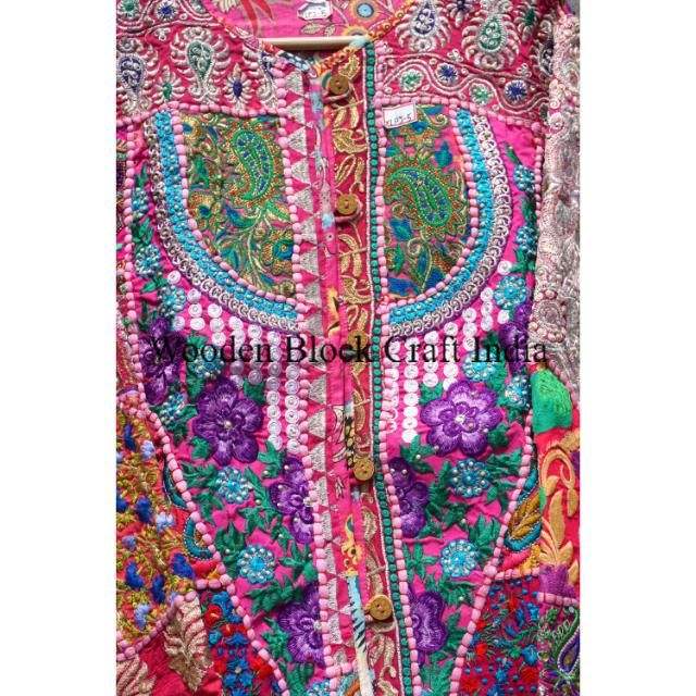 Women's Bohemian Jacket Handmade Vintage Cotton Coat with Ethnic Pattern Wholesale Traditional Indian Design for Autumn Season