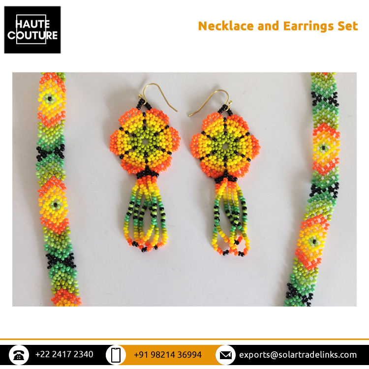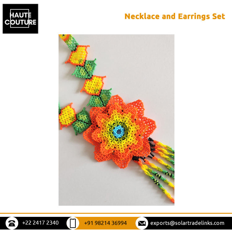 Women's Bohemian Lilium Flower Pendant Design Beaded Necklace and Earrings Set Huge Selling Tribal Style Fashion Jewelry