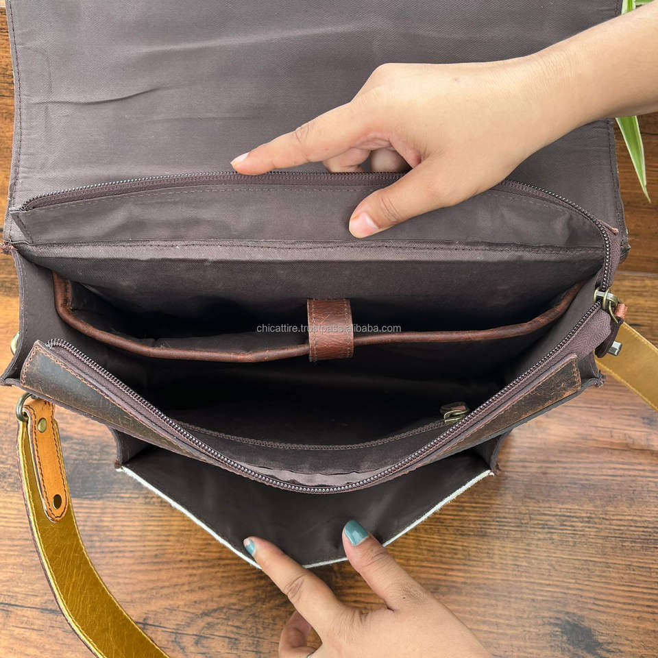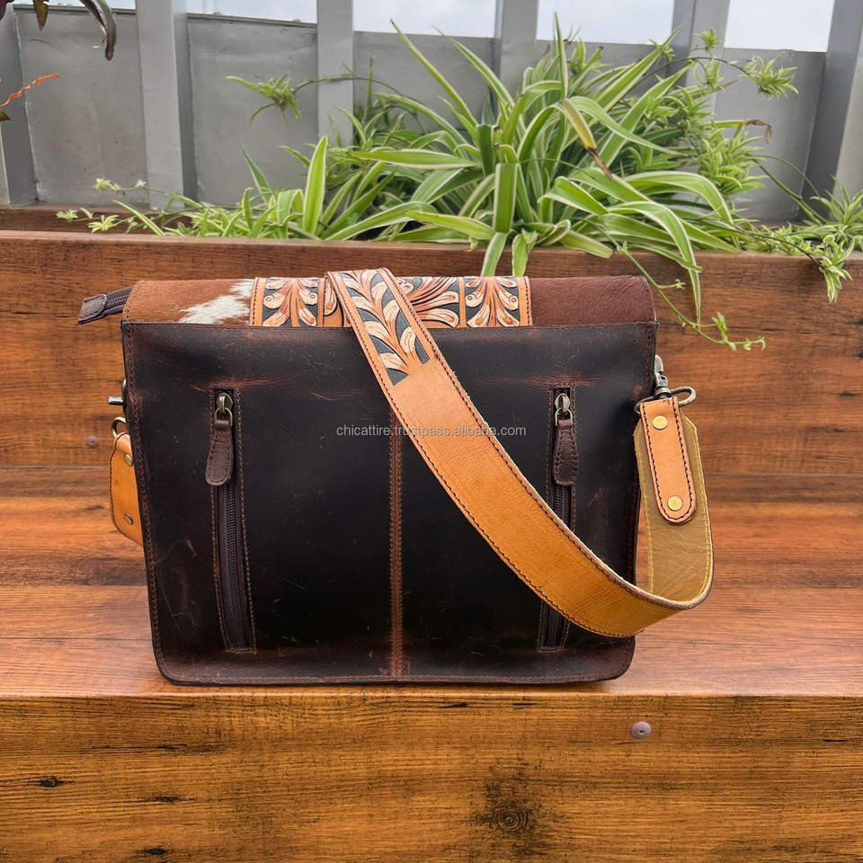 Stylish Women's Bohemian Real Cowhide Fur Leather Sling Bag New Collection Hand Tooled with Zipper Closure Multi-Use Hot Selling