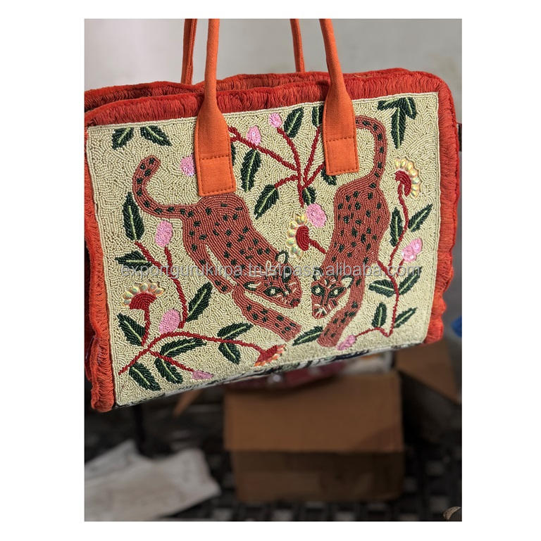 Women's Bohemian-Style Canvas Shoulder Bags Designer Beaded Messenger for Beach Party Evening Shopping Bag India Embroidery Bag