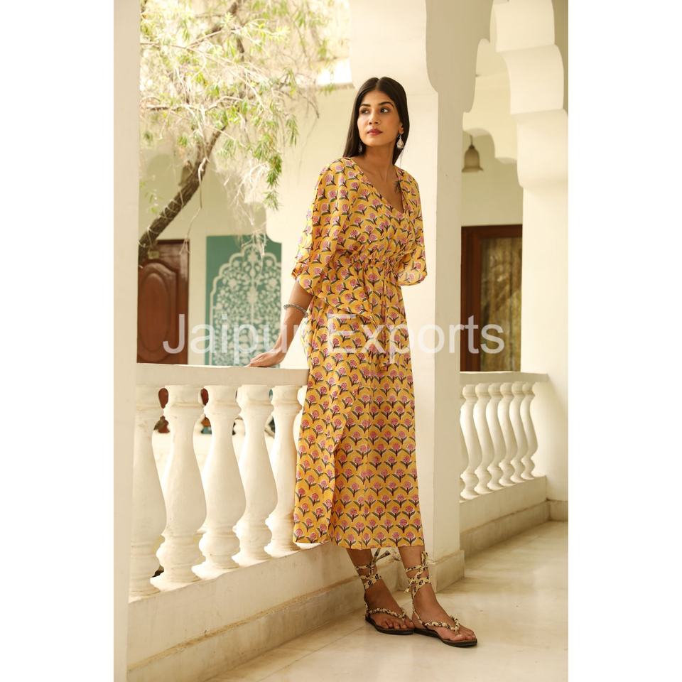 Women's Bohemian Style Long Kaftan Boho Floral Cotton Printed Summer Plus Size Hippie Beach Bikini Cover Woven Casual Dresses