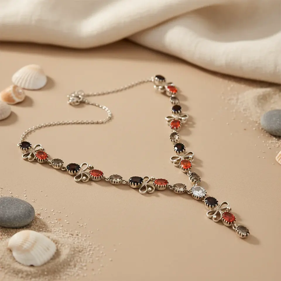 Women's Bohemian Style Silver Gemstone Flower Necklace Gold Plated with Pearl Agate Diamond for Party or Gift