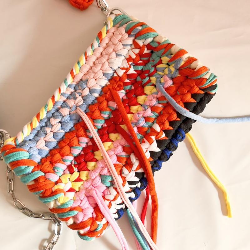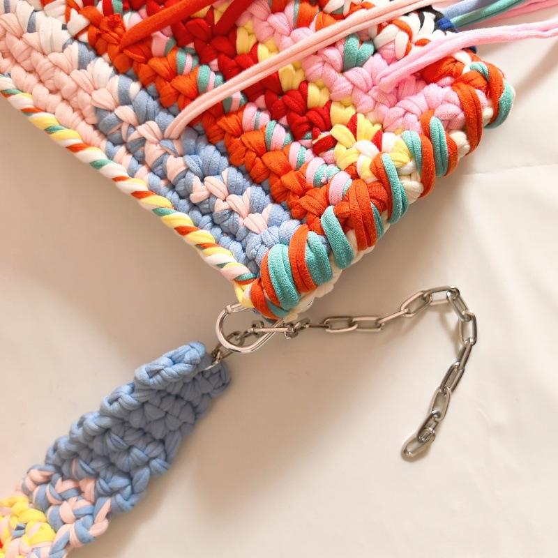 Women's Bohemian Style Single Strap Lace-up Closure Crochet Shoulder Bag with Clash Color Tassel