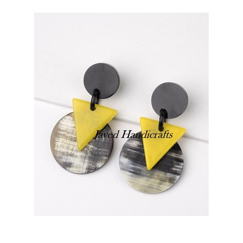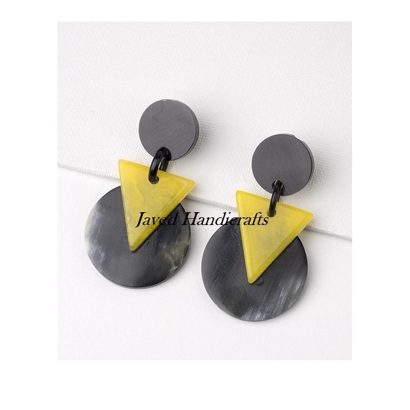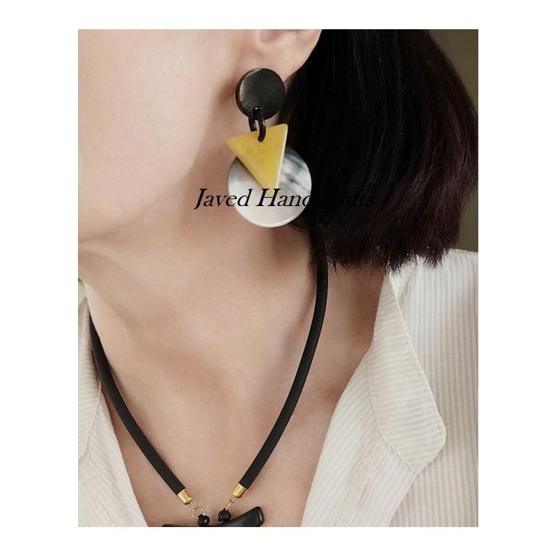 Women's Boho Animal Style Buffalo Horn Earrings Handcrafted Geometric and Droplet Design Horn Jewelry Polished Technique