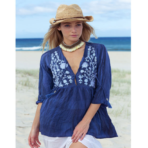 Women's Boho Blouse 100% Cotton Comfortable Cool for Summer Bold Embroidery Lace Embellishment Natural Cheap Top Wholesale