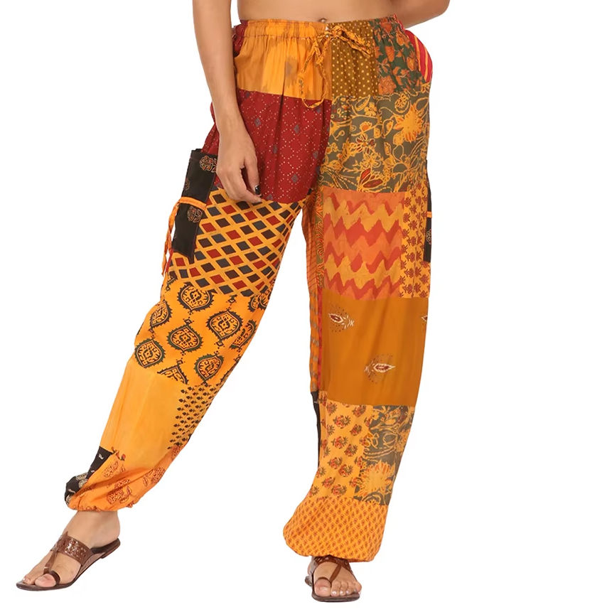 Women's Boho Print Cotton Harem Pants Free Size High Comfortable Satin Elastic Logo Yoga Joggers Baggy Breathable Winter Flat