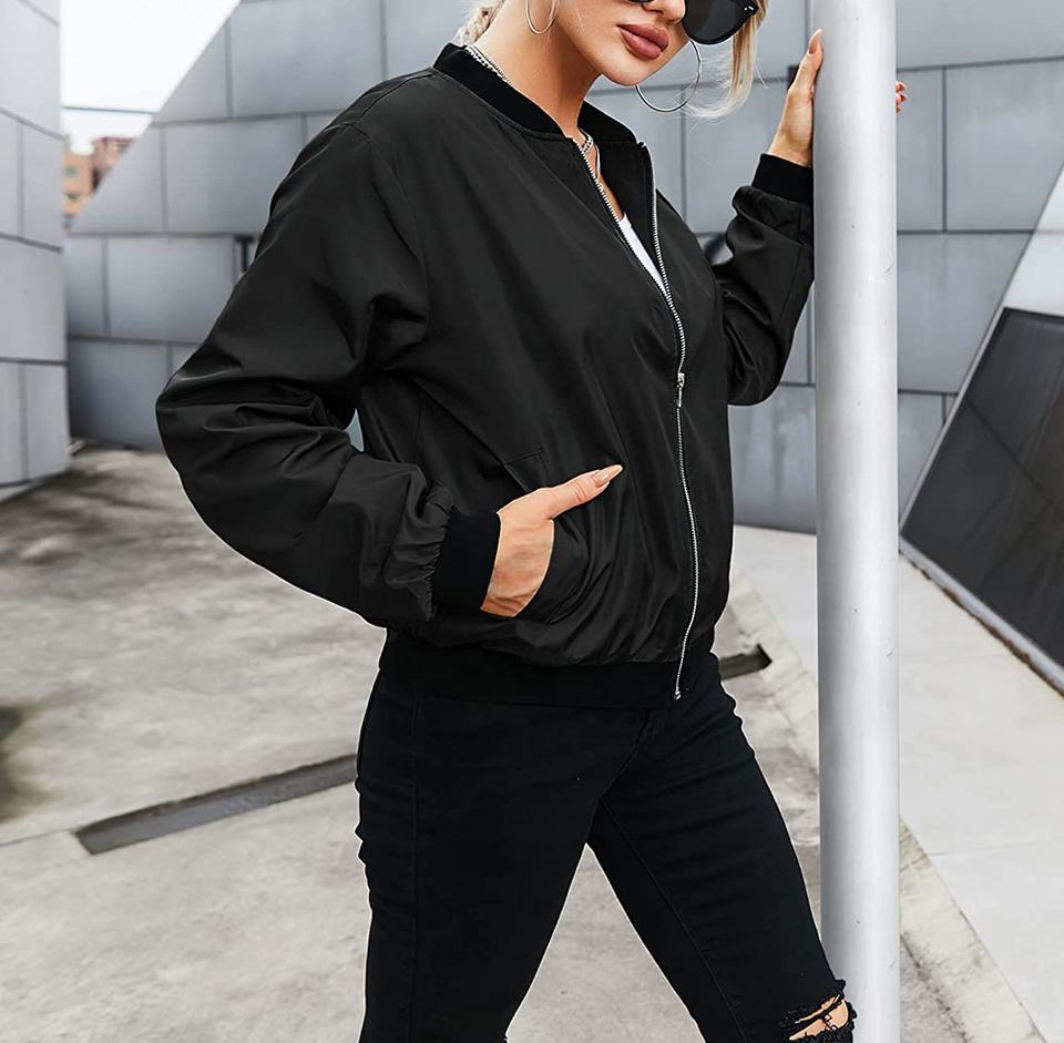 Women's Bomber Jacket Casual Coat Zip up Outerwear Lightweight Windbreaker Bomber Jacket with Pockets