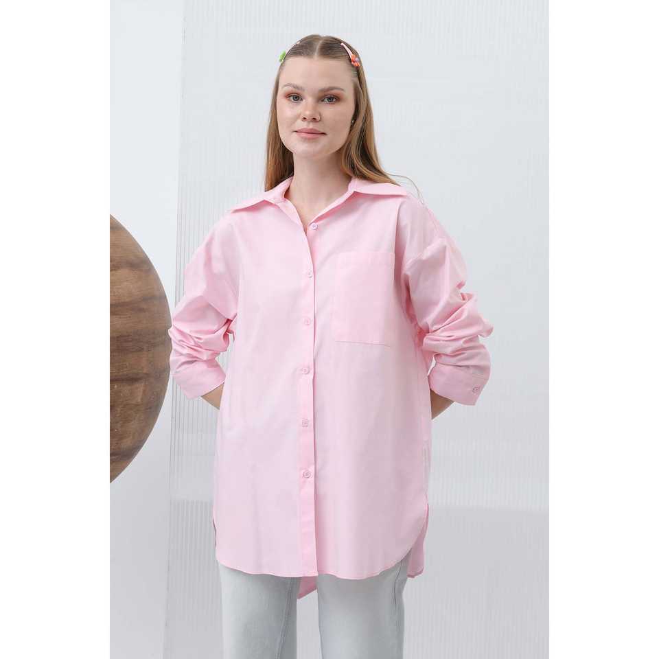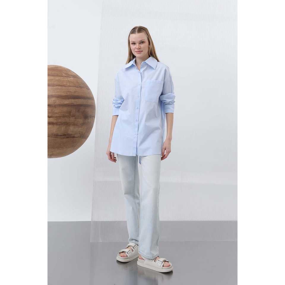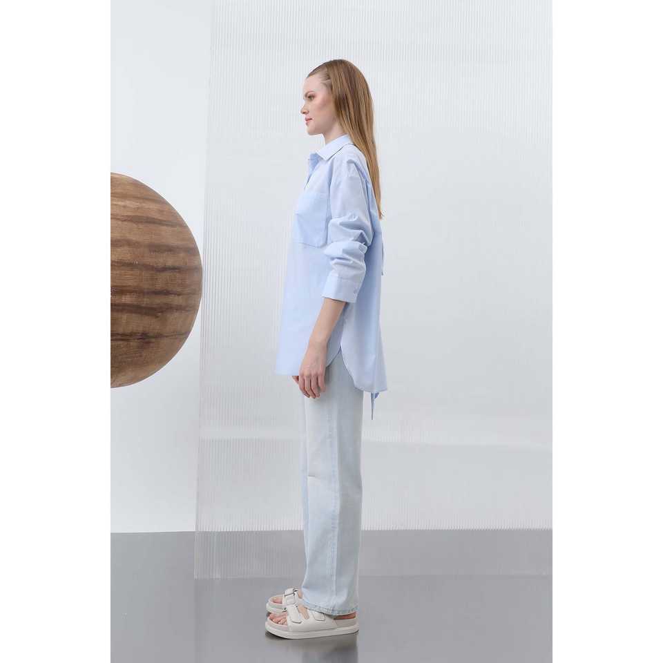 Women's Boxy Poplin Shirt Full Sleeve With Bow Back Wrap Tie Everyday Wear