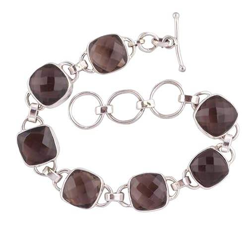 Women's Bracelet Natural Smoky Quartz Gemstone April Birthstone Wedding Engagement Handmade Jewelry 925 Sterling Silver Bracelet
