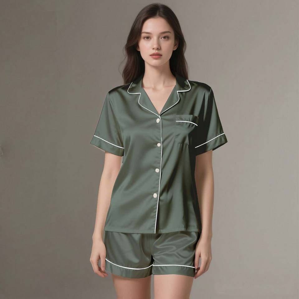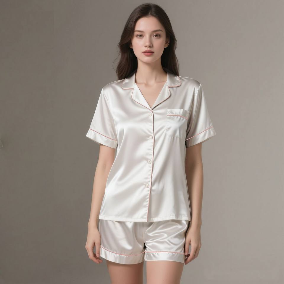 Women's Breathable Luxury Silk Satin Pajamas Set for Summer & Spring All Season Wear Customizable