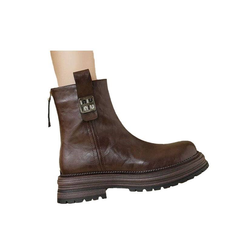 Women's British-Style Western-Style for Martin Boots New Autumn Winter Retro Zipper Thick Heel Short Boots Mother Cotton