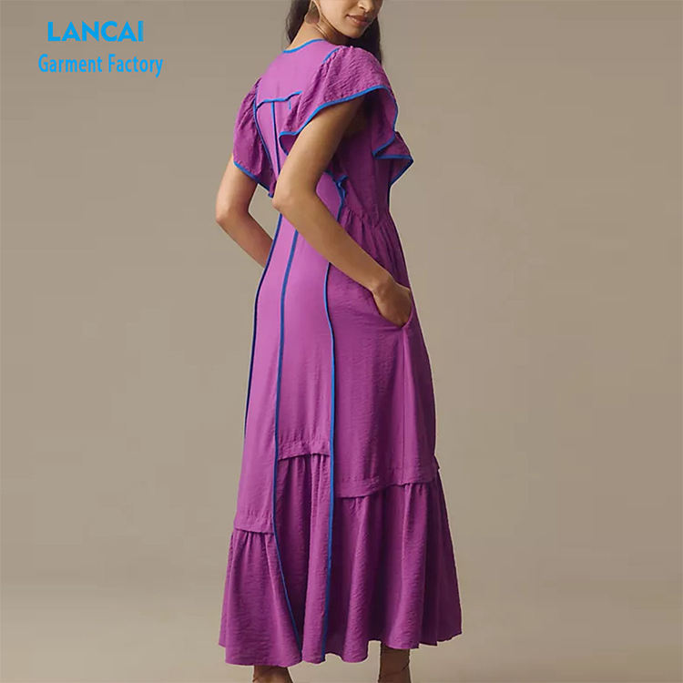 Women's Bubble Sleeve Elegant Luxury High Waisted Deep V-neck Maxi Skirt Ruffled Stretch Casual Dress for Women