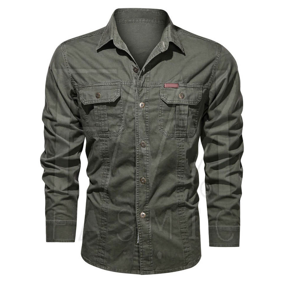 Women's Button Down Long Sleeve Cargo Shirt with Shoulder Straps 100% Cotton Customized Peking Safari Style