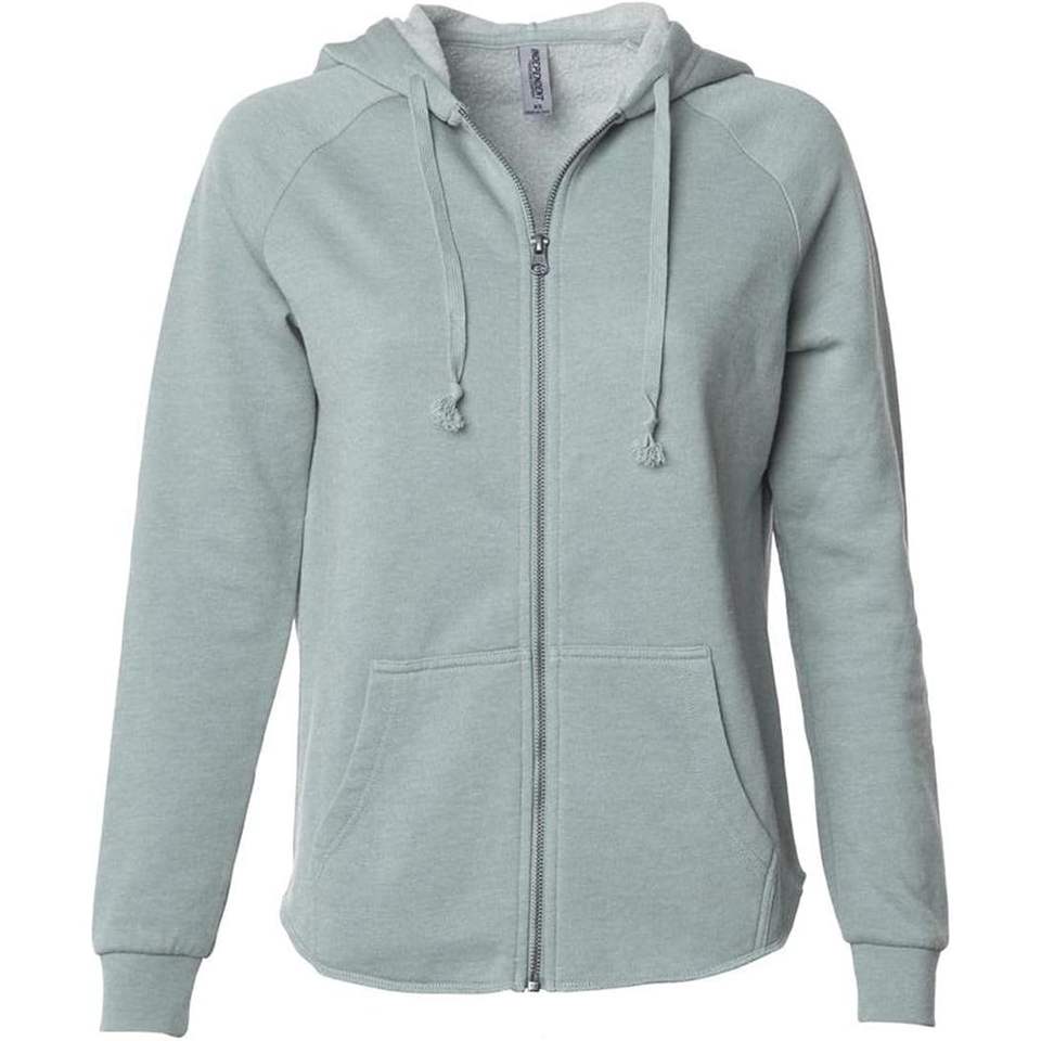 Women's California Wave Wash Full-Zip Hooded Sweatshirt PRM2500Z 2XL Sage-Independent Trading Co.