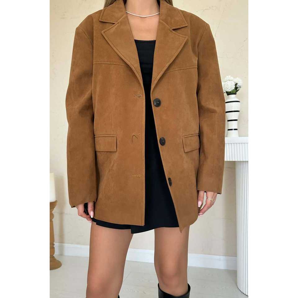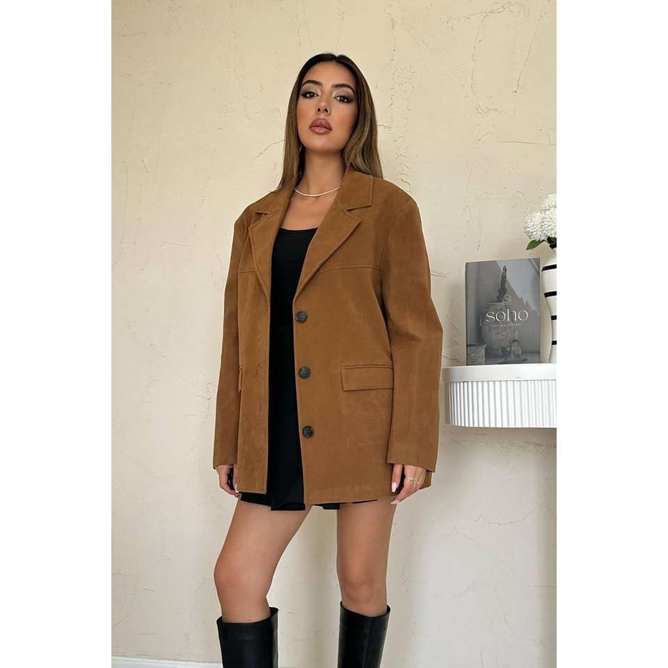 Women's Camel Suede Blazer Jacket Wholesale Product