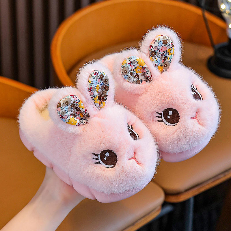 Women's Canvas Cotton Fluffy Cute Puppy-pattern Winter Warm Eco-friendly Slip-resistant Plastic-soled Plush Evergreen Mules