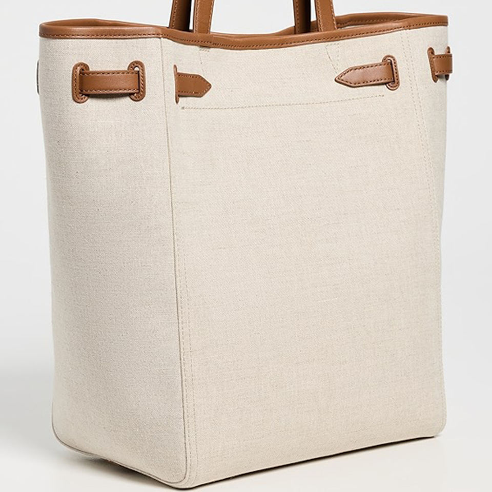 Women's Canvas Tote Bag Leather Trim Magnetic Closure Shopping Shoulder Bags Custom Logo Travel Weekender Cotton Canvas Handbags
