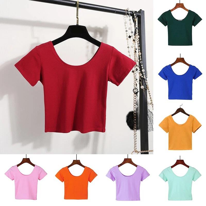 Women's Regular Sleeve Crop Top Neck Stretch Plain Vest T-Shirt Summer Classic Street Wear Button 100% Cotton Breathable