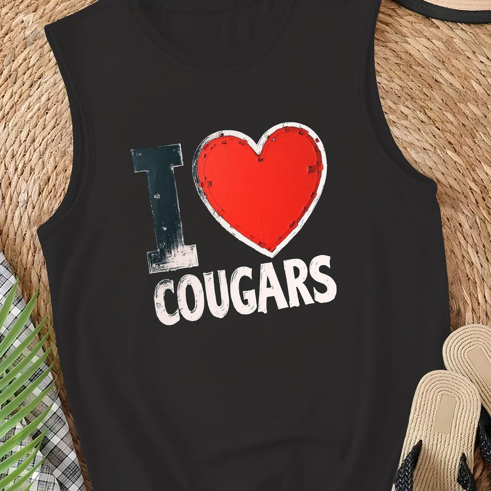 Women's Casual COUGARS Logo Vest Heart I Love Knitted Fabric Front Position Logo