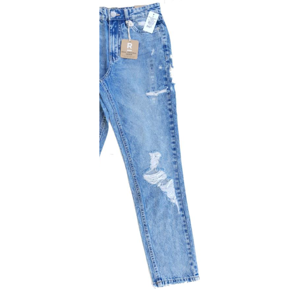 Women's Casual Cotton Elastane Straight Five Pocket Denim Pant Mid Waist Light Wash Distressed Vacation Style