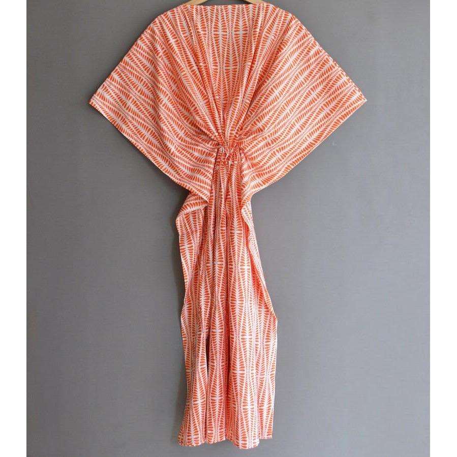 Women's Casual Cotton Kaftan Maxi Dress Beautiful Block Print Summer Long Beach Cover Short Sleeves Swimsuit Cover Ups Ethnic